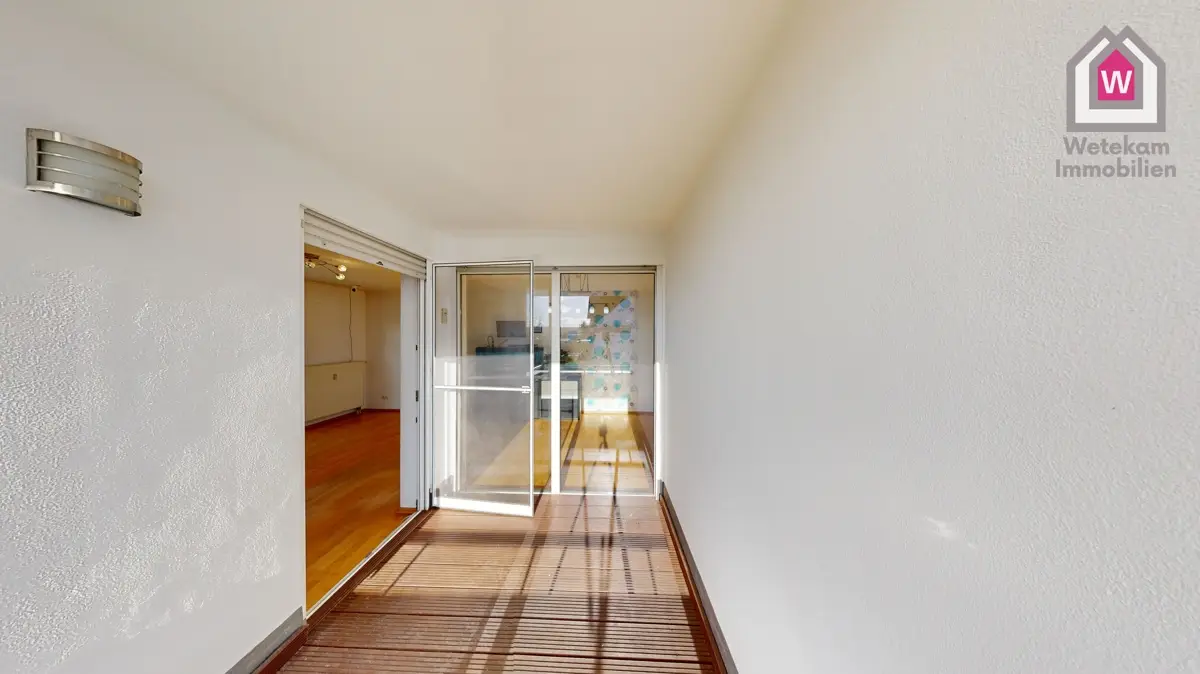 Sonniger Süd-Balkon mit hochwertigem Bankirai-Boden