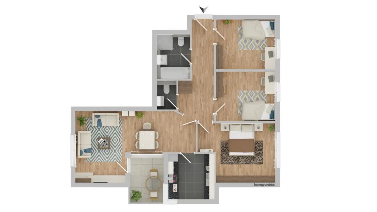 Die Wohnung punktet mit einer durchdachten Ausstattung: ein Wannen- und Duschbad, ein separates Gäste-WC und eine gut durchdachte Raumaufteilung. Besonders die Schlafräume begeistern durch ihre Großzügigkeit – perfekt, um sich entweder als Paar oder kleine Familie gemütlich einzurichten. Oder vielleicht benötigen Sie eher Platz für das Homeoffice? Kein Problem, hier ist Raum für Ihre Wünsche.