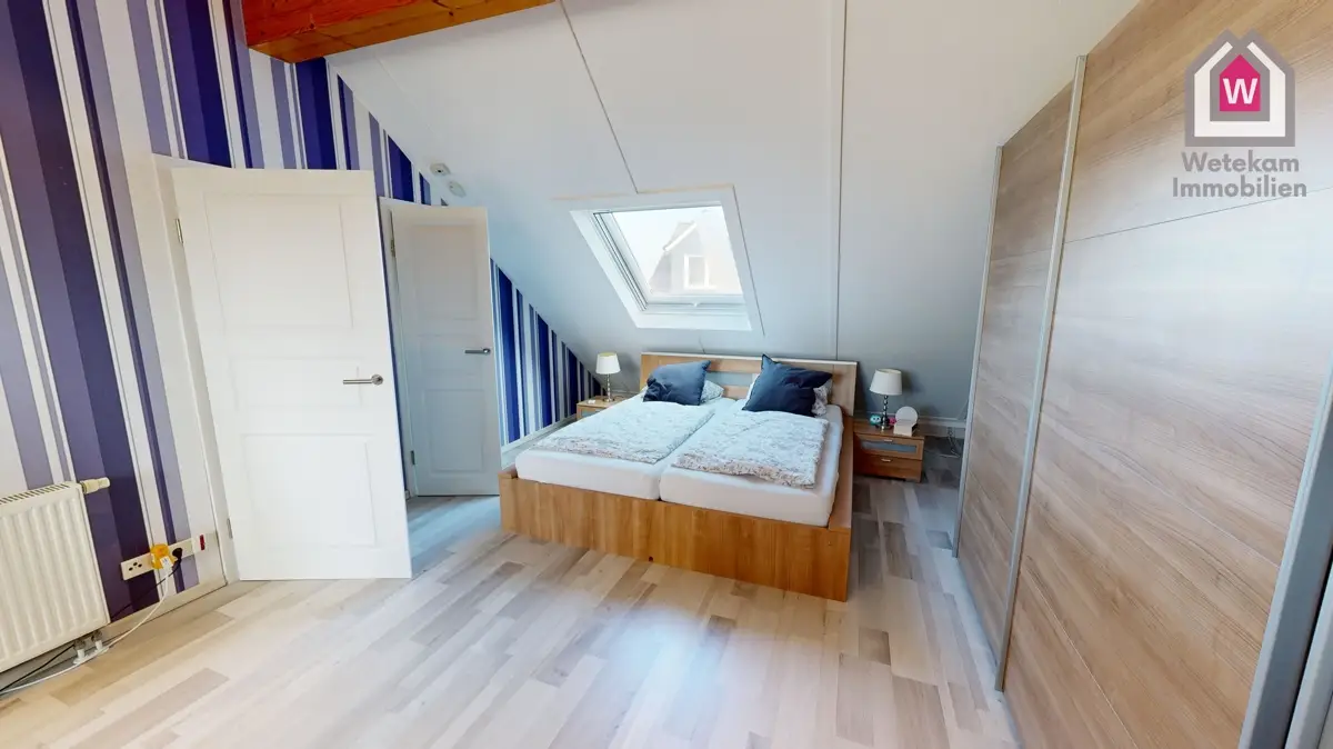 Das Studio im Dachgeschoss würde sich perfekt als Hobbyraum einrichten lassen. Aktuell wird diese Etage als Elternetage genutzt.
