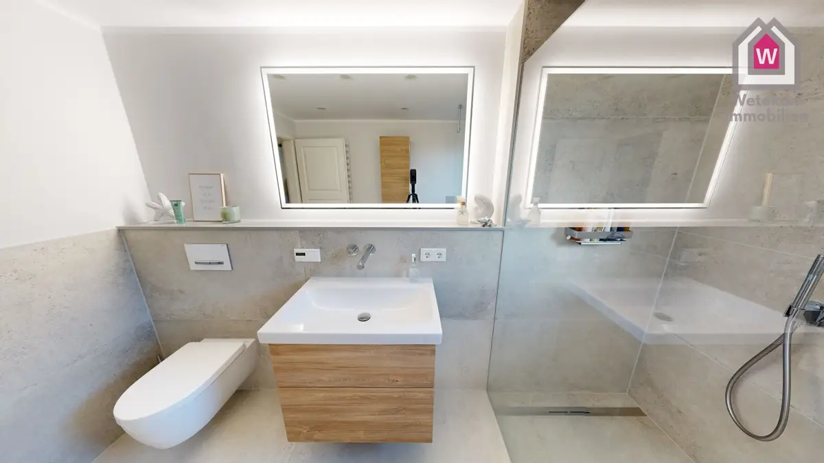 – modernisiertes Badezimmer mit geräumiger Dusche