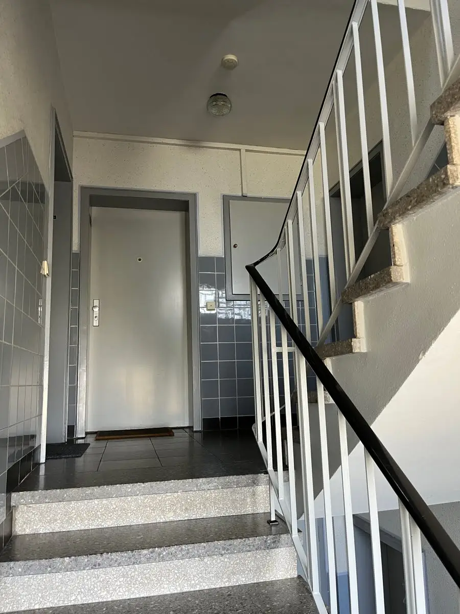 Die Wohnung liegt im 2. Obergeschoss eines ruhigen Mehrfamilienhauses. Durch die großen Fenster besticht die Wohnung mit viel Licht, gerade im Wohnbereich.