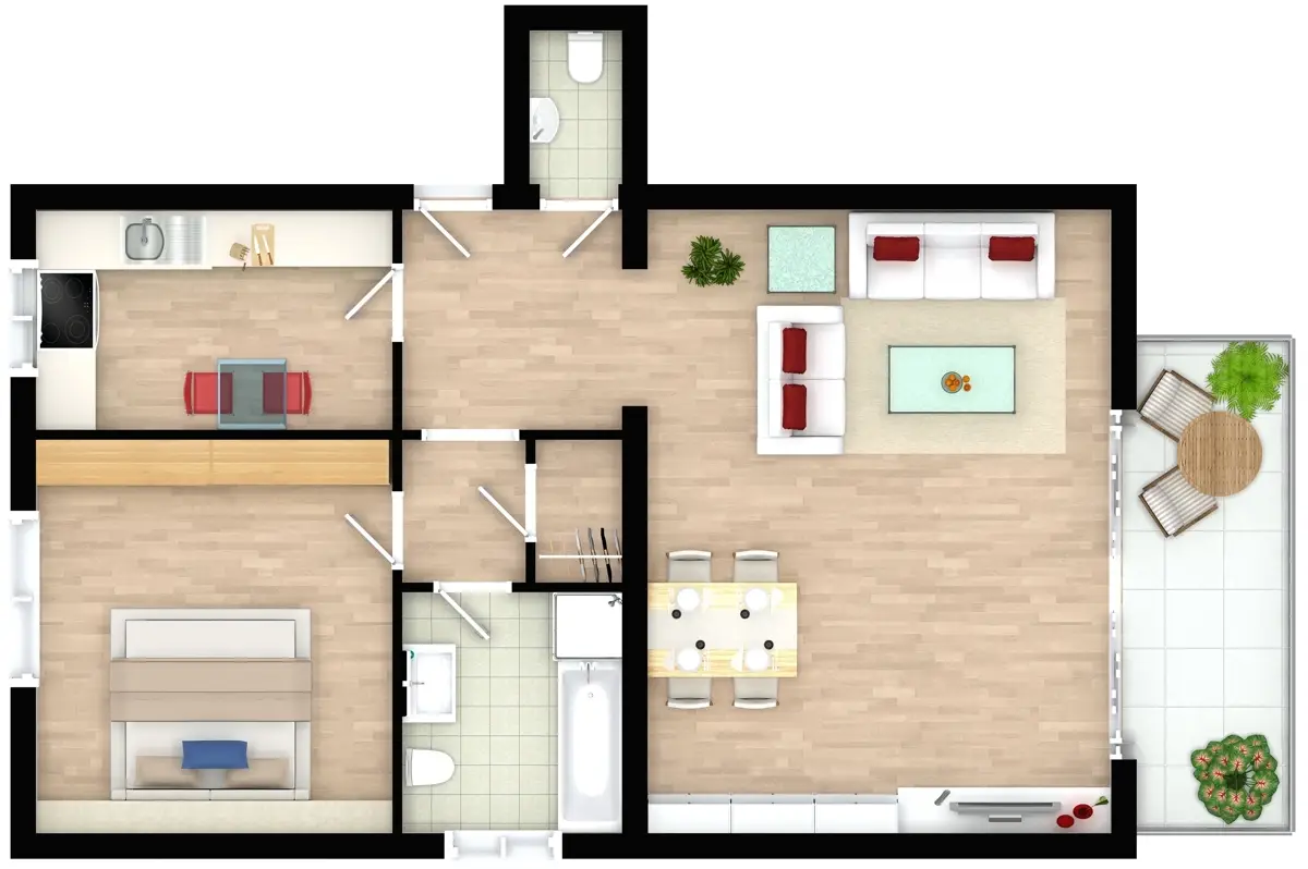 Als Highlight ist mit Sicherheit der großzügige Wohnraum mit bodentiefen Fenstern zu bezeichnen.
